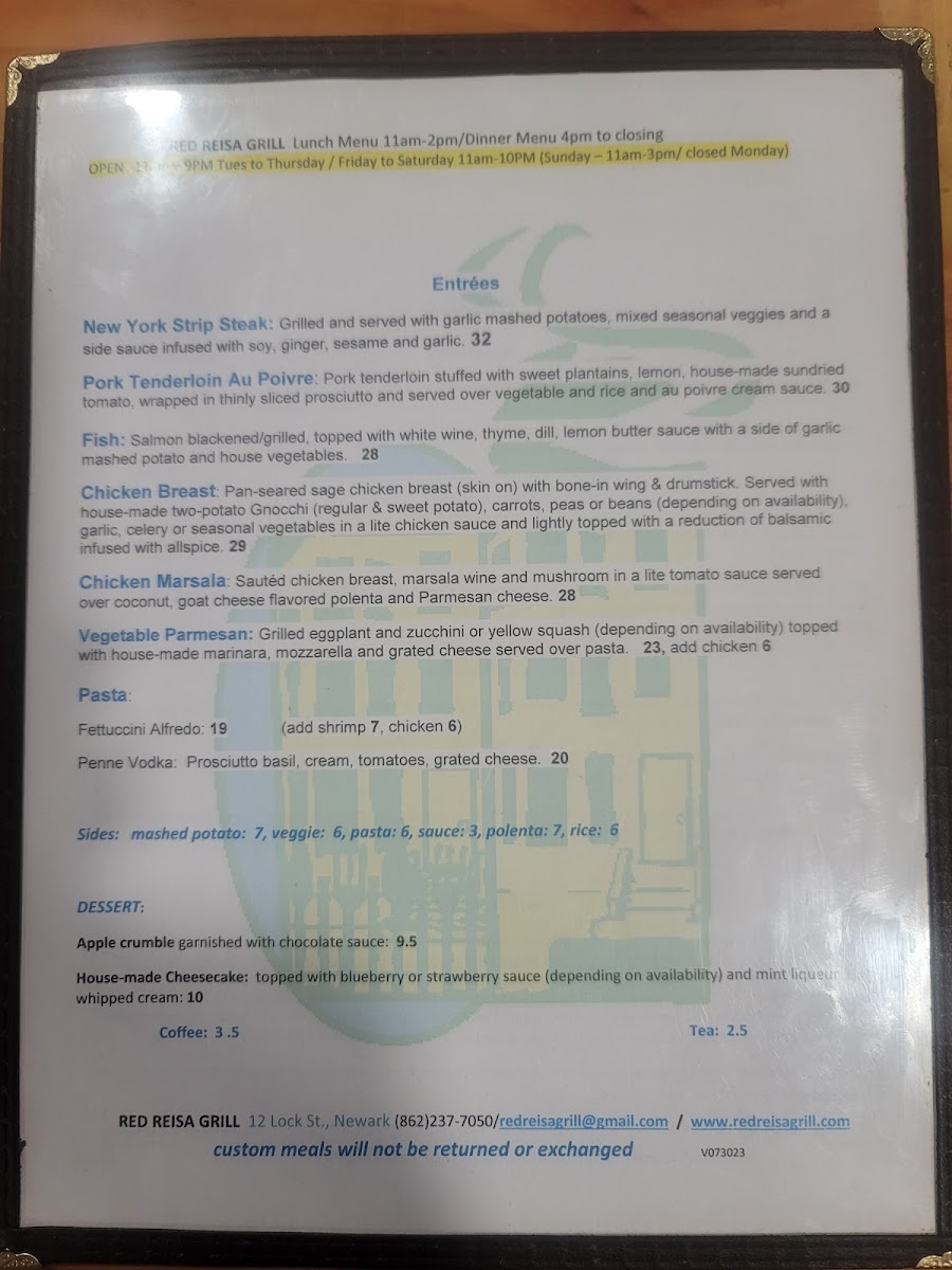 Sauted chicken breast, marsala wine and mushroom in a lite tomato sauce served over coconut, goat cheese flavored polenta and Parmesan cheese.
